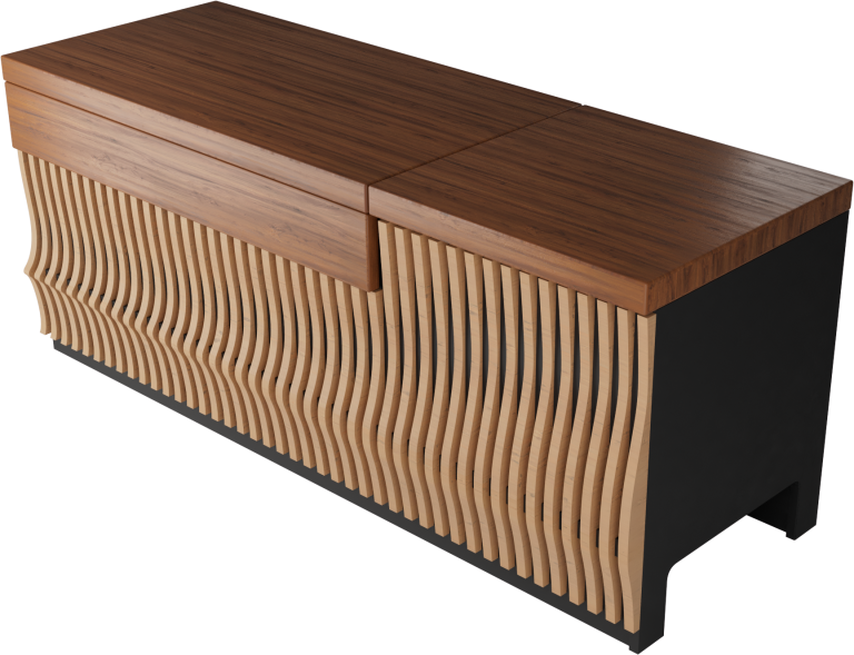 Crafted with precision from select hardwoods and refined materials, each creation showcases flowing lines, layered textures, and a sculptural presence that elevates any room.